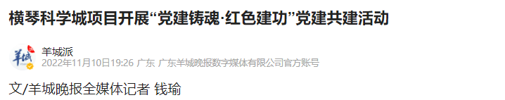 “本次‘黨建鑄魂·紅色建功’黨建共建活動是在大橫琴集團打造橫琴科學城項目黨建聯建生態(tài)圈的基礎上的一次深化拓展,對推動黨建和項目建設的融合發(fā)展,引導一線黨員堅定理想信念,牢記黨的宗旨,增強責任擔當,有著積極意義,將進一步推動黨的二十大精神在重大項目一線落地見效?!贝髾M琴集團黨委書記田偉介紹。