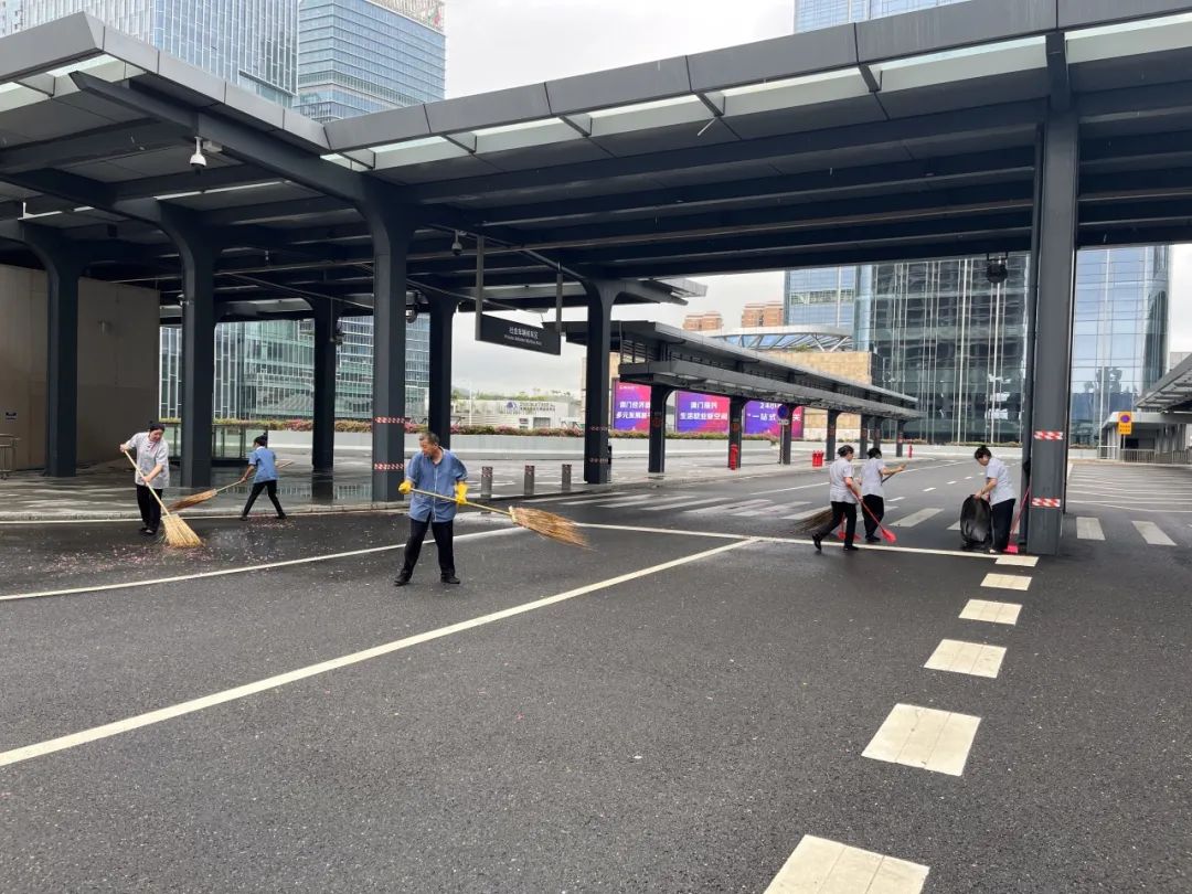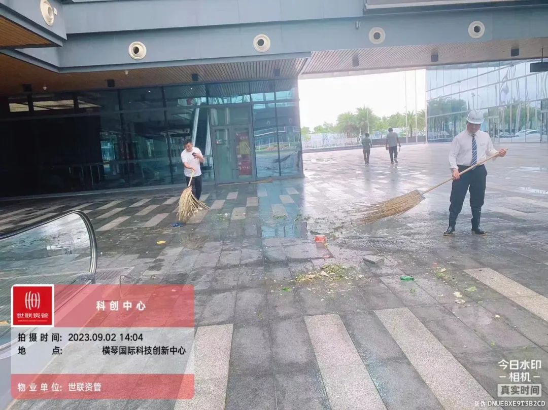 第一時間對園區(qū)環(huán)境進行清障復原,完成園區(qū)所有枯樹樹葉清理、樹木扶正,樹撐檢查加固;完成園區(qū)公共垃圾桶、煙灰柱、地毯復原工作;檢查受災情況并進行修復,檢查設備機房、電梯是否正常運行等,確保企業(yè)可正常辦公。其中橫琴國際科創(chuàng)中心園區(qū)應急避難場所本次接待人員約1500人次,產(chǎn)生生活垃圾約3噸,人員撤離后已及時清理。
