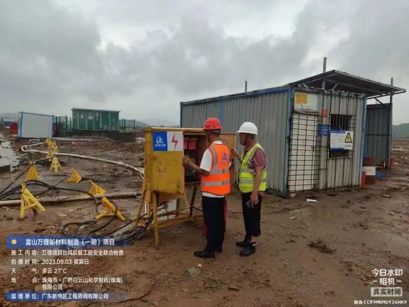 在斗門大橫琴5.0產(chǎn)業(yè)新空間萬鋰新材料(一期)項目現(xiàn)場,開展了臺風后復工復產(chǎn)安全大檢查,現(xiàn)場組織排水、圍擋修復各項工作。