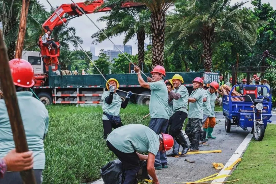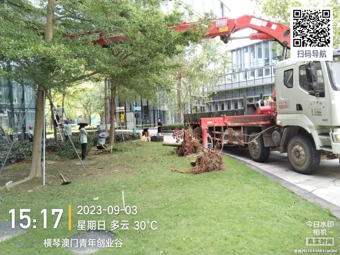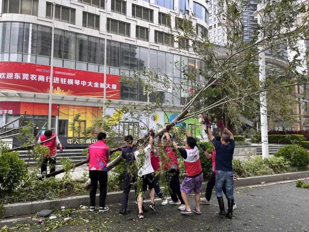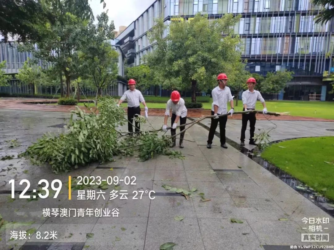 大橫琴琴建公司第一時間組織人員開展搶險工作。包括對建筑物進行全面檢查,確保建筑物結構安全。同時,集中力量對各項目受損樹木進行修復和清理,利用工具和機械設備積極清理影響道路、橋梁正常通行的傾倒樹木和雜物,針對重點區(qū)域迅速制定方案,盡快恢復正常的生產(chǎn)生活秩序。