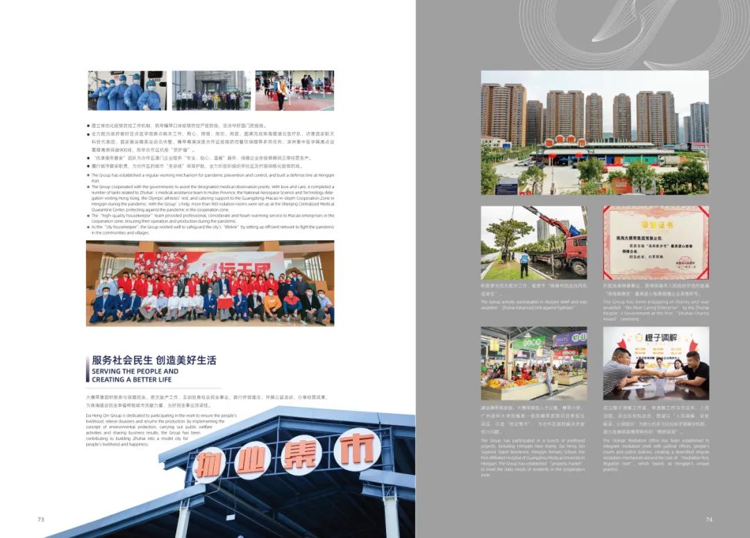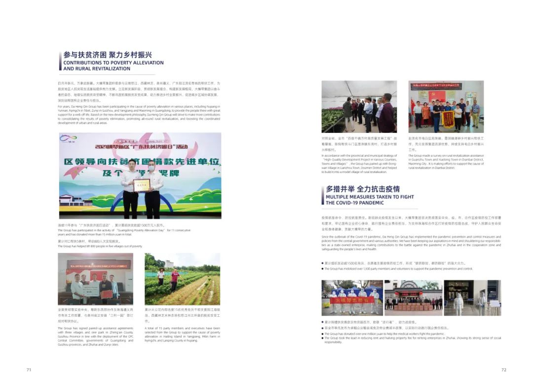 積極參與云南怒江、西藏林芝、貴州遵義、廣東陽江茂名等地的幫扶工作,助力推進鄉(xiāng)村全面振興;在疫情防控的特殊時期,舉全集團之力支持珠海和合作區(qū)打好疫情防控阻擊戰(zhàn);主動投身社會民生事業(yè),開展公益活動,為珠海建設民生幸福樣板城市貢獻力量……