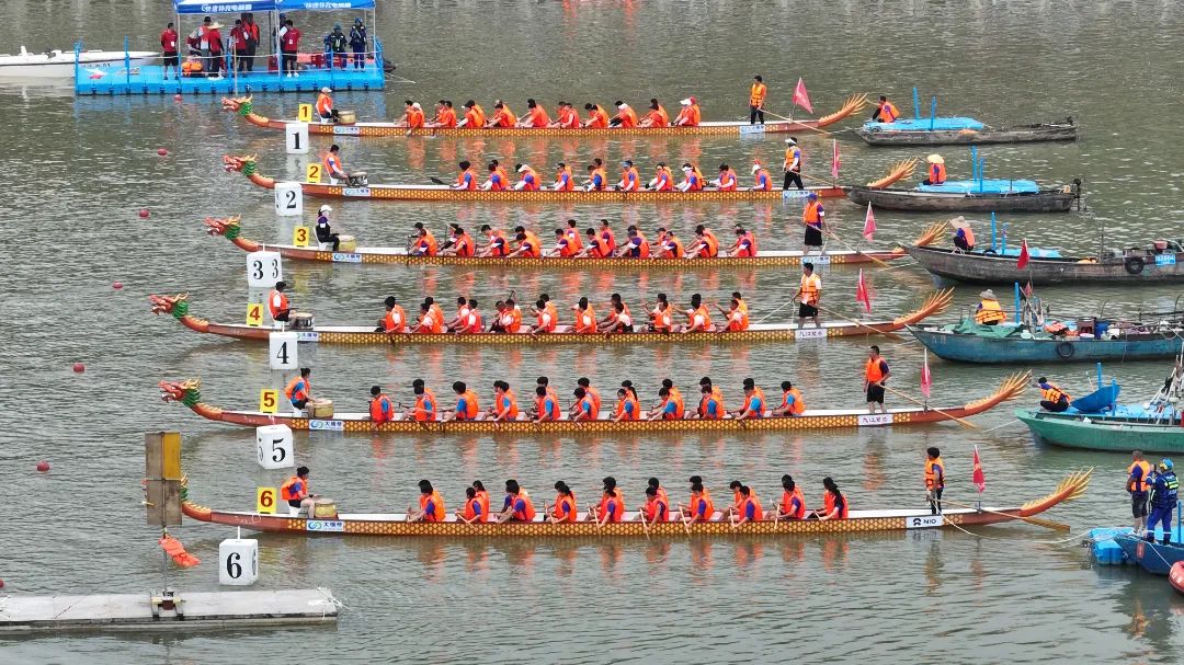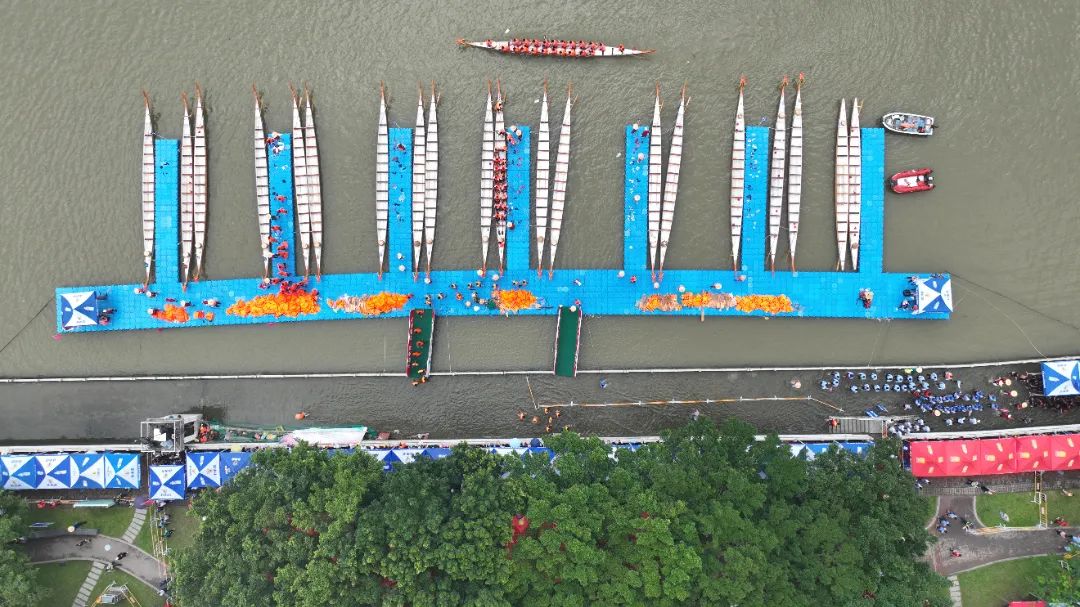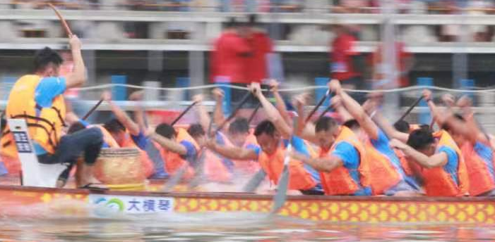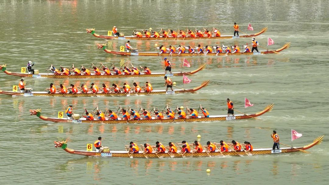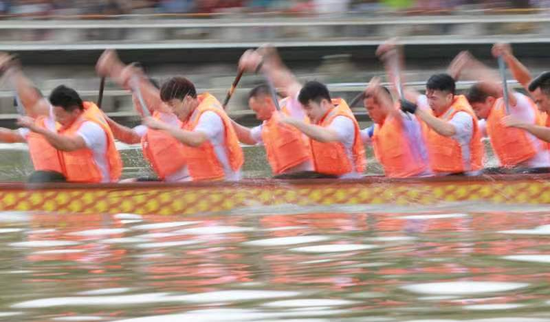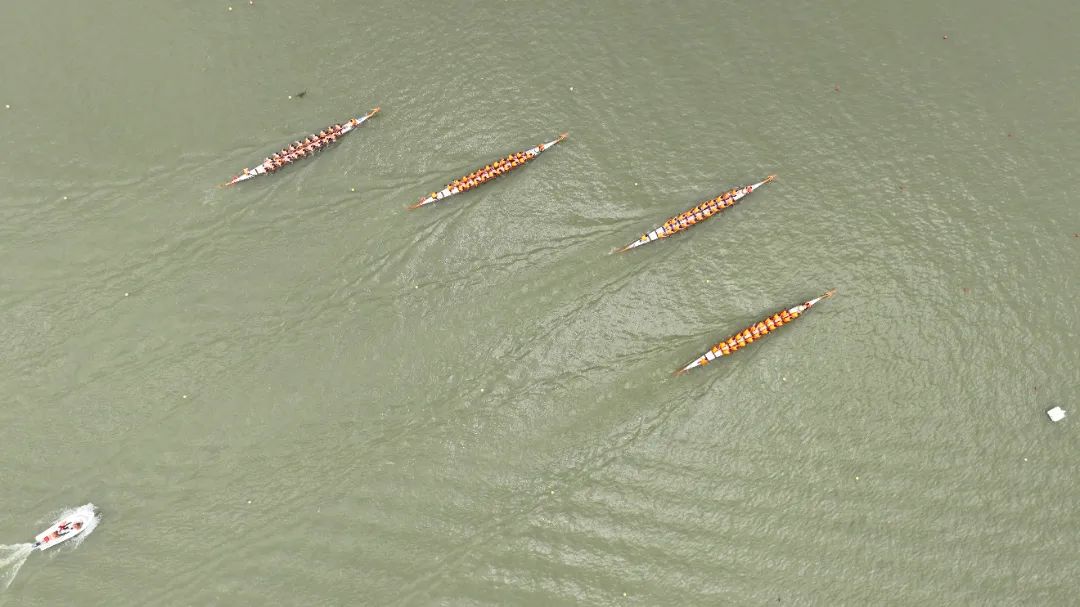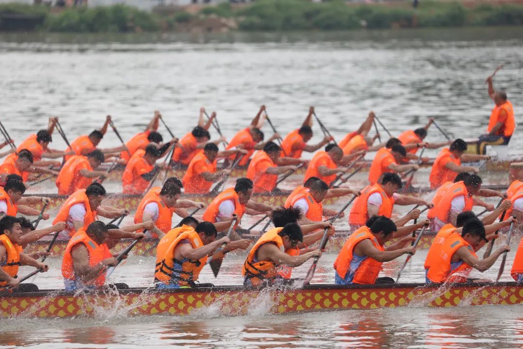 云旗獵獵,鑼鼓頻催。賽場上,在富有節(jié)奏的鼓聲下,整齊劃一的動(dòng)作,奮力揮槳、劈波斬浪,河面上演著“速度與激情”。