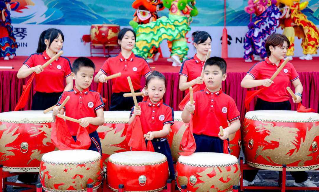 《群獅共舞》《輪滑龍》《賽龍奪錦》《幼兒萌獅》等斗門傳統(tǒng)民俗文化,以及管樂團(tuán)合奏《迎賓曲》《金龍奪標(biāo)》、舞蹈《龍騰九洲》、川劇變臉等富有濃厚非遺特色的文體節(jié)目在岸上的舞臺(tái)穿插上演。