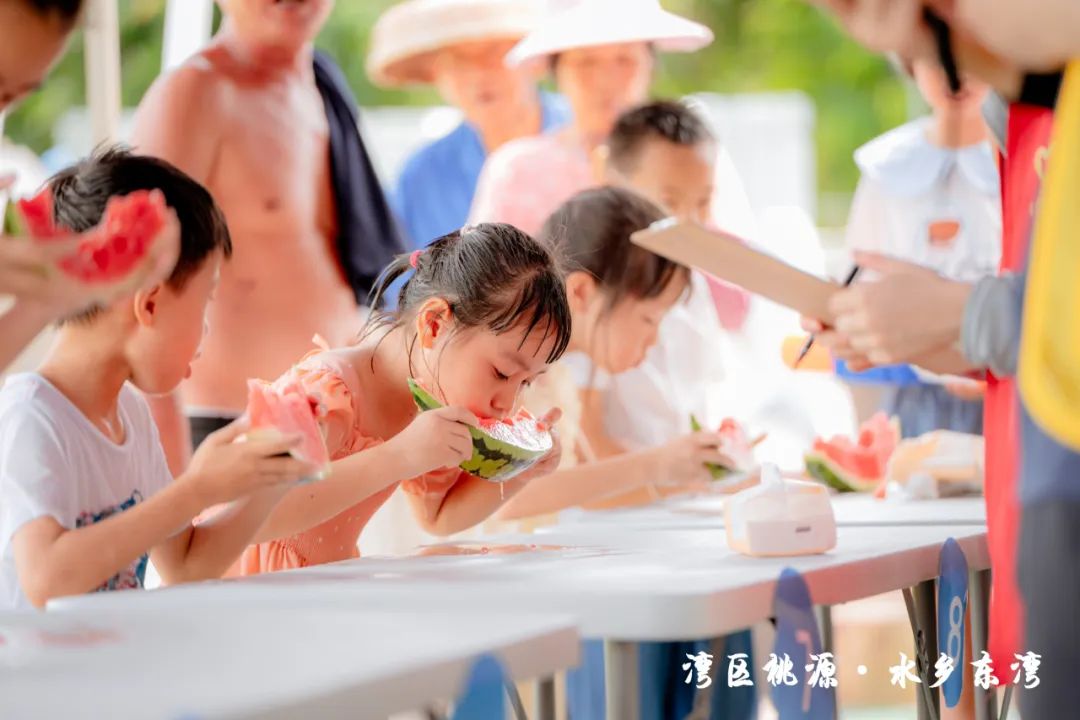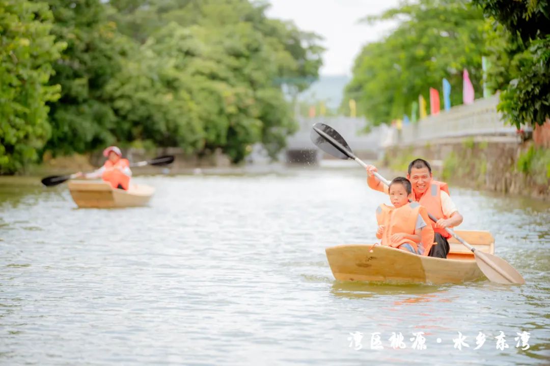 隨后,現(xiàn)場(chǎng)的水車伴著歡笑聲噴灑出陣陣水霧,也標(biāo)志著此次“東灣夏日清涼大作戰(zhàn)”活動(dòng)正式開(kāi)始。在接下來(lái)的兩天時(shí)間里,活動(dòng)將充分結(jié)合東灣村民俗文化和稻田、河涌等良好的生態(tài)環(huán)境基底,通過(guò)農(nóng)艇競(jìng)渡、趣味戲水、非遺剪影、東灣美食、清涼集市等元素,將傳統(tǒng)鄉(xiāng)村元素與現(xiàn)代競(jìng)技、活動(dòng)相融合,打造一系列清涼刺激的互動(dòng)體驗(yàn)?;顒?dòng)形式豐富多樣,既有團(tuán)隊(duì)合作的競(jìng)技項(xiàng)目,也有輕松愉快的趣味游戲,還有特色清涼集市供游客休閑購(gòu)物,可謂是“面面俱到”。