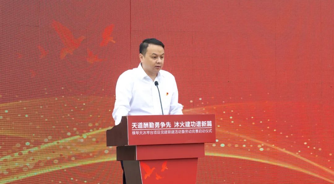 3月28日,由大橫琴置業(yè)投資建設的橫琴天沐琴臺項目舉辦黨建聯(lián)建暨勞動競賽啟動儀式。廣東省委橫琴工委黨建工作處處長童鐵丁,珠海市總工會黨組書記、常務副主席唐尚洪,橫琴粵澳深度合作區(qū)行政事務局黨支部書記、副局長張文驥,橫琴粵澳深度合作區(qū)城市規(guī)劃和建設局黨總支委員、住房保障處處長鄭慧仙,珠海大橫琴集團有限公司副總經(jīng)理祝杰,珠海大橫琴置業(yè)有限公司黨總支書記、董事長唐文彬,中建八局華南分局黨委書記郭青松,各參建單位代表及工友代表約80人參加本次活動。