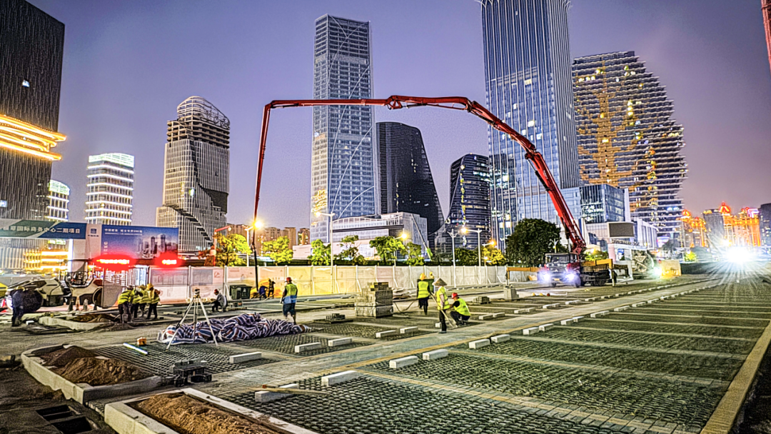 紅旗村2號(hào)停車(chē)場(chǎng)位于橫琴鬧市區(qū),旅客較多、人流量大。加上項(xiàng)目地處老舊城區(qū),地下管線錯(cuò)綜復(fù)雜且施工空間受限,增加了改造的難度。為了減少對(duì)周邊居民和商業(yè)的影響,大橫琴股份科學(xué)組織施工,合理分配任務(wù)及物資運(yùn)輸,通過(guò)人工探挖管線、錯(cuò)峰施工、交叉作業(yè)等措施,加快推進(jìn)項(xiàng)目建設(shè)。
