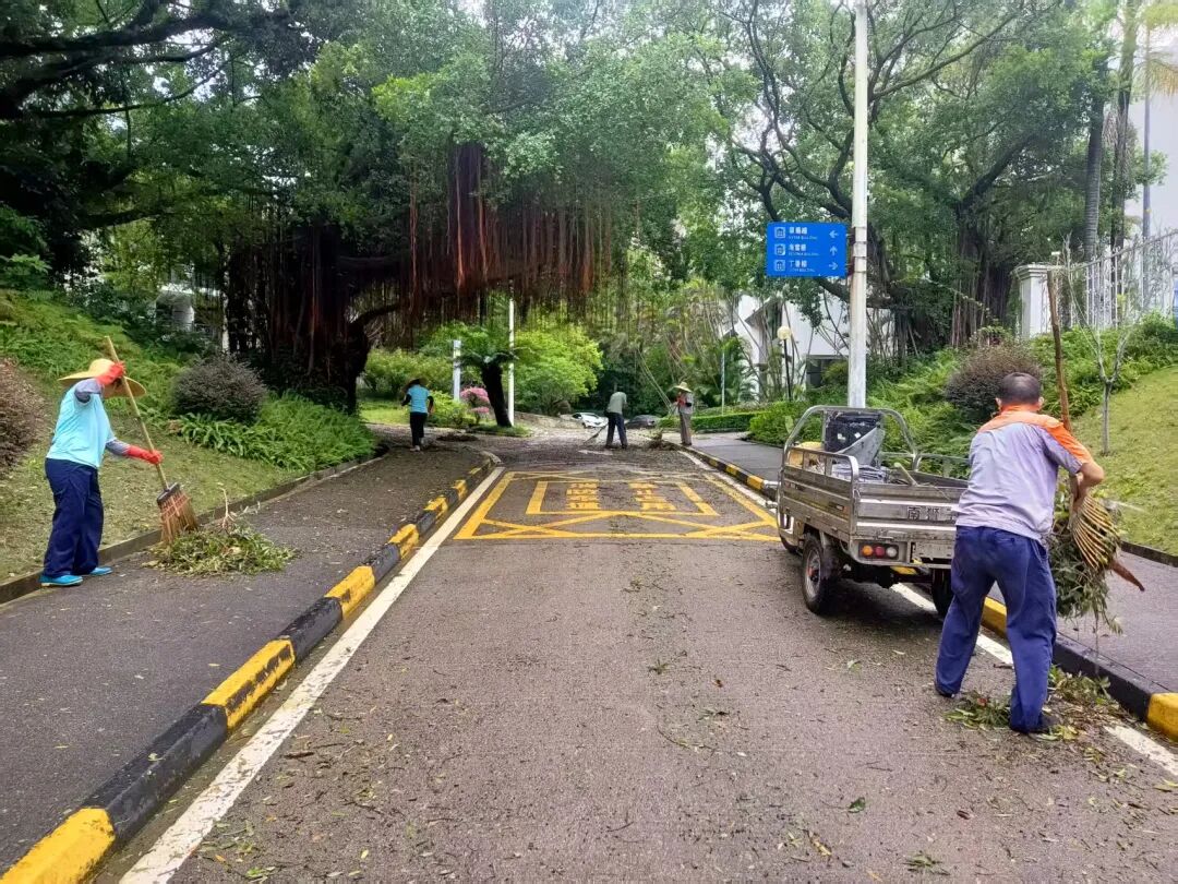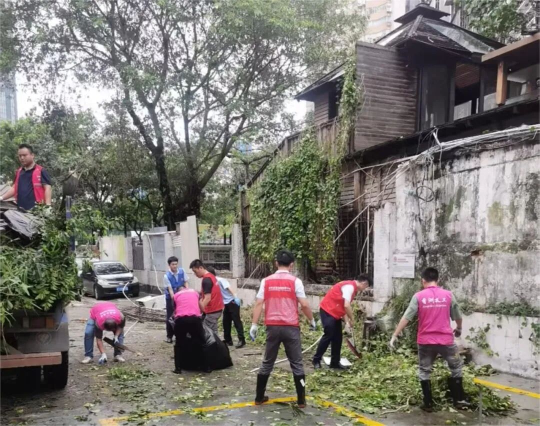 9月25日,珠光集團(tuán)黨委嚴(yán)格落實(shí)“雙報(bào)到”機(jī)制,主動(dòng)對(duì)接社區(qū)需求,迅速啟動(dòng)集團(tuán)黨員先鋒突擊隊(duì)中的13支小分隊(duì)前往拱北街道華僑社區(qū)及灣仔街道作物社區(qū)、富興社區(qū)、桂圓社區(qū)、灣仔社區(qū)等社區(qū)開展清理倒伏樹木的殘枝落葉、排查安全隱患等工作,保障車輛與行人安全通行。
