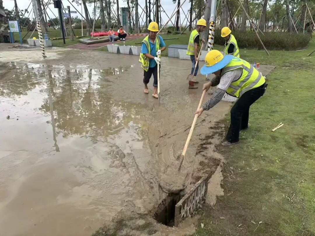珠光集團(tuán)組織500多人次投入到橫琴星樂度·露營(yíng)小鎮(zhèn)、花海長(zhǎng)廊、濕地公園、星享·天沐酒店、南油大酒店、人才公寓等旗下文旅項(xiàng)目的復(fù)工復(fù)產(chǎn)工作,目前已高效完成園區(qū)道路清障任務(wù),全面恢復(fù)所有電力系統(tǒng),修繕園區(qū)導(dǎo)視牌、(高空)廣告牌,對(duì)帳篷頂部損毀區(qū)域進(jìn)行安全圍蔽;基本完成人才公寓受損住戶的室內(nèi)設(shè)施維修工作,有序安置受影響的住戶;加快完成花海長(zhǎng)廊3、5號(hào)驛站廣場(chǎng)因海水倒灌造成的淤泥與垃圾清運(yùn),以及賽艇公園大面積倒伏樹木扶正復(fù)原工作。