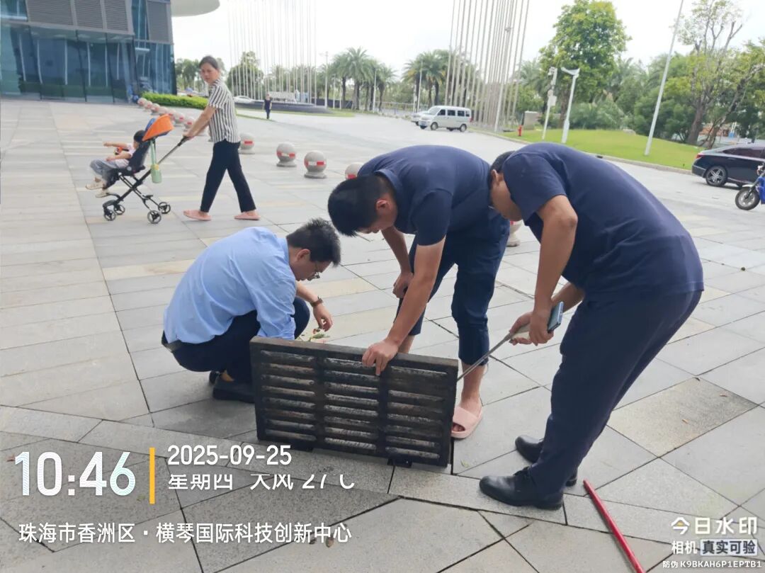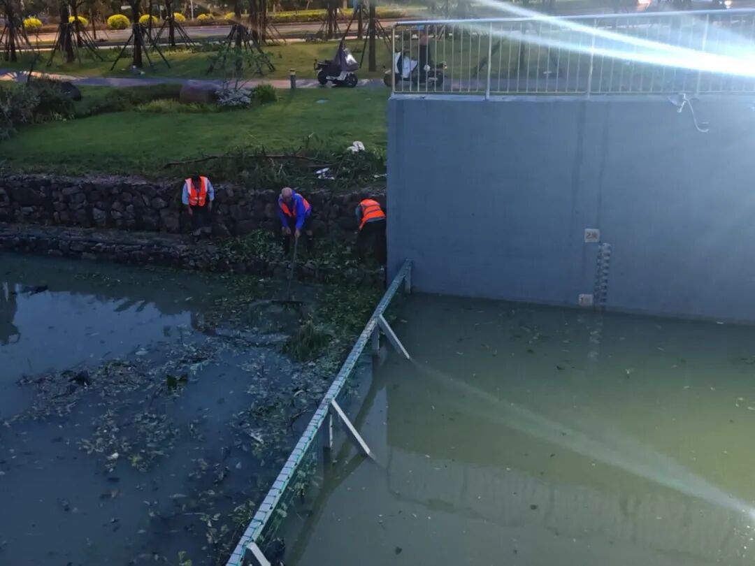 臺(tái)風(fēng)期間,受風(fēng)暴潮影響,橫琴天沐河水位上漲,珠光集團(tuán)迅速組織搶險(xiǎn)力量,通過加筑沙袋有效阻止海水倒灌進(jìn)天沐河,同步安全轉(zhuǎn)移設(shè)備設(shè)施,并緊急安裝抽水設(shè)備清理積水,避免變電房被水浸泡。臺(tái)風(fēng)過境后,搶險(xiǎn)隊(duì)伍立即投入后續(xù)清理工作,第一時(shí)間清理泵站進(jìn)水口垃圾,保障泵站排水通暢,降低村渠水位;清理排水口垃圾,保障土渠排水暢通;并全力協(xié)助合作區(qū)市政管理署,清理倒塌的邊境圍網(wǎng)。
